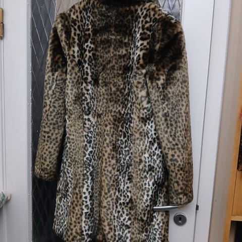 Reserved Faux fur coat i størrelse M for kvinner. Jakken er hvit og har en dobbeltradet knappestilling med svart knapper. Materialet er mykt og har en pelslignende tekstur. Jakken har en bred krage og lommer på sidene. Ubrukt