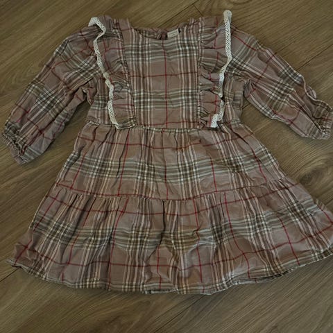 LIVLY barnekjole i leopard mønster, størrelse 98. Kjolen har langermet design og er laget av mykt materiale som passer for barn i denne aldersgruppen. Veldig pent og knapt brukt. Ser ingen bruksmerker.
