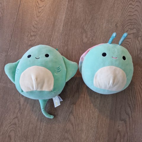 Selger tre supersøte og pent brukte Squishmallows! De er myke, rene og kommer fra et røykfritt og dyrefritt hjem.