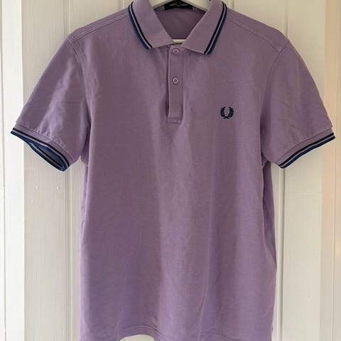 Fred Perry Slim Fit Polo T-skjorte i størrelse XL for menn. T-skjorten er rød med kontrasterende blå og lyseblå detaljer på kragen og ermene. Laget av bomullsmateriale, designet for en tettsittende passform.