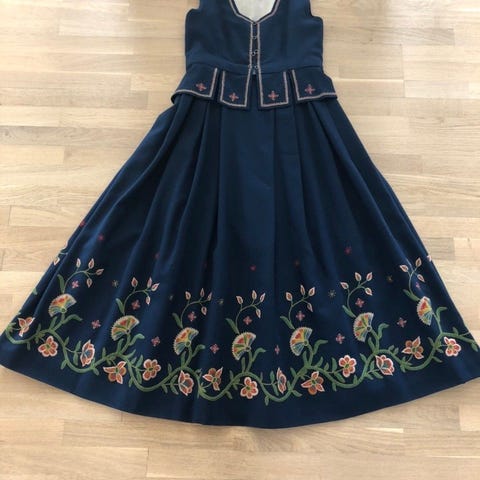 Pent brukt vestoppland bunad med veske og lue. Ca str xs-s.