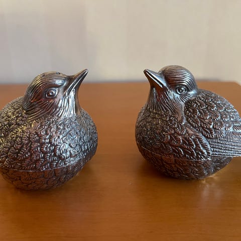 Elegant salt- og peppersett med fugler