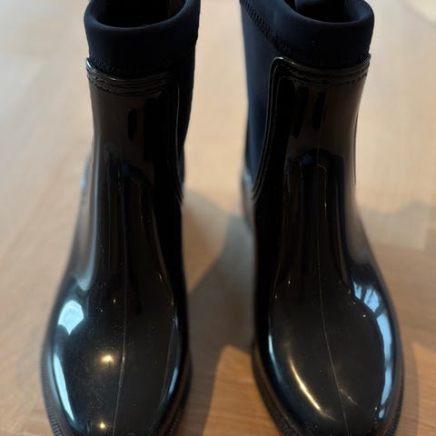 Tommy Hilfiger regnstøvler i størrelse 38. Støvlene er svarte og laget for å beskytte føttene mot fuktighet ved vått vær. Passer til bruk i regnvær og gjørmete forhold. De er størrelse 38 men de passer bare ikke på min fot så da selger eg de heller til en rimelig peng! Utrolig fine og passer til de fleste anledninger!