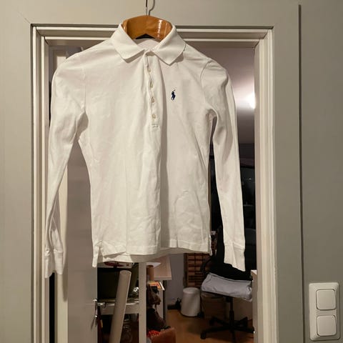 Pent brukt hvit langermet genser fra Ralph Lauren.