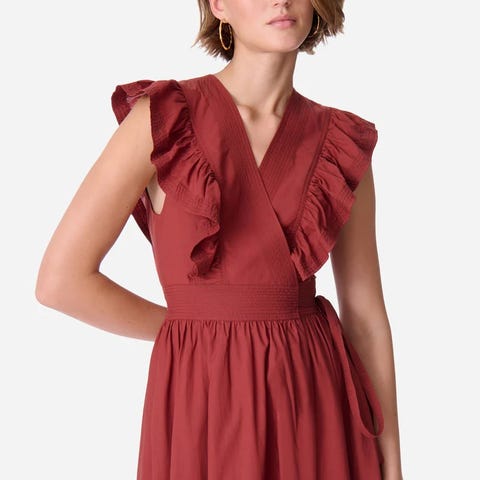 Ellos hverdagskjole i størrelse 42 for kvinner. Kjolen er rød og har et enkelt design med knyting i livet. Materialet har en tekstur som gir et lett strukturert utseende. Passer til hverdagsbruk.