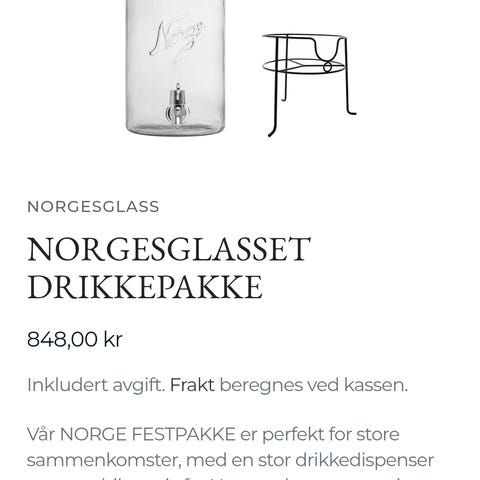 HELT NY, UBRUKT NORGES GLASS VANNDISPENSER SELGES BILLIG