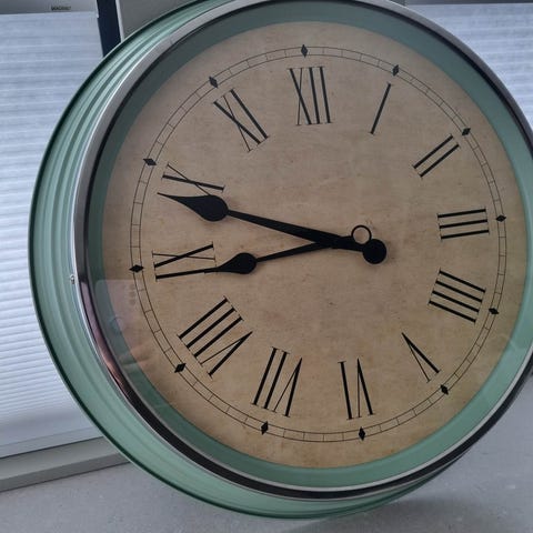 Tøff klokke i jern med romertall. Batteridrevet.Denne står på Bømlo, men kan tas med til Stavanger onsdag om ønskelig