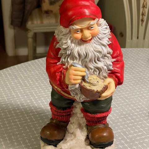 3 voksne nisser og 6 barne nisser fra Hedlund, søker ny familie til jul. Hedlund merke under den ene store.