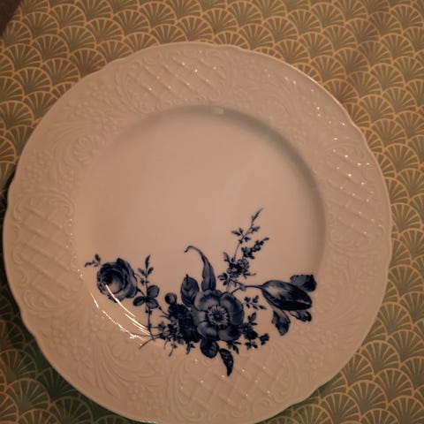 Jeg har i tillegg : 12 middagstallerken, tekanne, sukkerskål, fløtekanne, sausnebb, 5 serv.fat og 1 serv.bolle i samme serie, kan selges