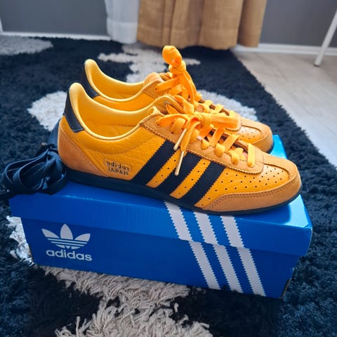 Selger et par helt nye Adidas Gazelle i klassisk blå og gul fargekombinasjon. Størrelse UK 10 (tilsvarer EU 44 ⅔). Skoene er ubrukt, med tags og original eske. Gazelle-modellen er kjent for sin tidløse retrostil, semsket overdel og god komfort. Perfekt til både hverdagsbruk og streetwear.
