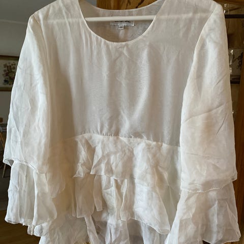 Tilstand? Pent brukt, men har dessverre fått et hull (se bilde). Noe rufs i råkanten. Tynt og delikat så tar forbehold om uoppdagede rifter, løse tråder etc. Pris justert.