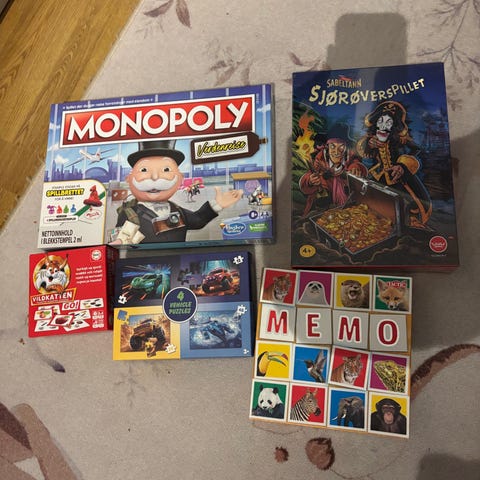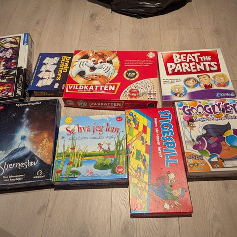 Har flere kjekke brettspill til barn og unge for salg.