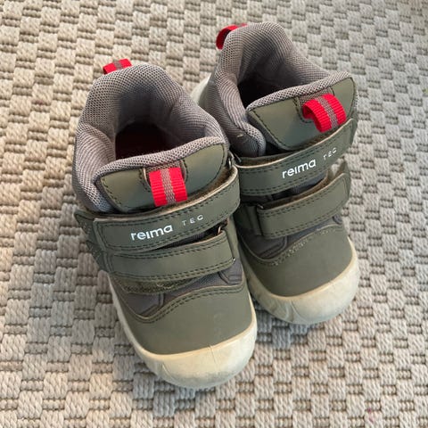 Reima Tec sko i størrelse 20, unisex modell. Skoene er grønne med hvit såle og har borrelås for enkel justering. Laget med slitesterkt materiale egnet til barnehage. Kjøpt for 700NOK på Reima butikk.