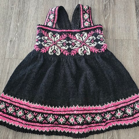 Strikka månetoppen kjole og genser. Selges uten lue.