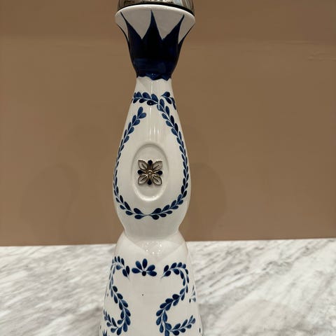 Selger 2 tomme Padre Azul Super Premium tequila-flasker, én Blanco (sølv) og én Reposado (gull).