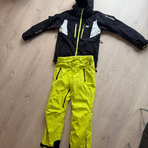 DC 10K vinterbukser i størrelse 14 og 16 år, fargene gul og blå. Laget for å gi beskyttelse mot kulde og fuktighet, egnet for utendørs bruk i vinterforhold. Materialet er designet for å være slitesterkt og vannavstøtende. Noe slitasje men fullt brukbart