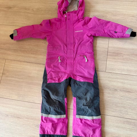 Didriksons vinterdress i str. 100 til salgs. Veldig lite brukt av ei jente (har vært brukt som dress nr. 2). Hel og pen, kun små slitasjer på knærne og ingen andre bruksmerker.
