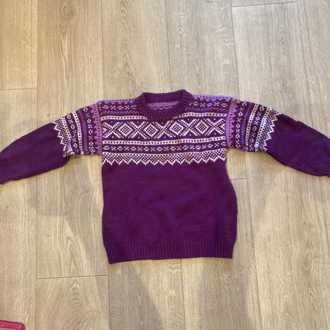 Ny hjemmestrikket "spot sweater" selges. Ca str 10 år.