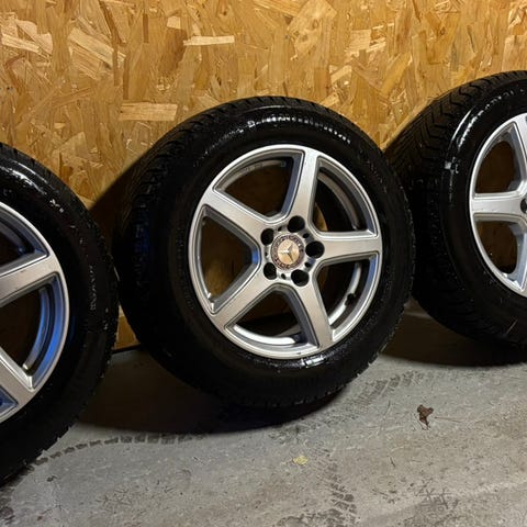 Dekkene er i god stand. Ligger i sentrum av Tønsberg.Fire komplette sett med dekk og felger.Boltstørrelse 5x100.