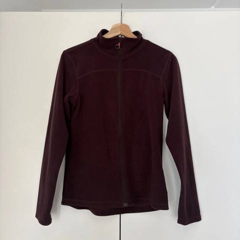 Ikke så tykk som power houdi. Veldig komfortabel. Glidelås kan åpnes både oppe og nede.