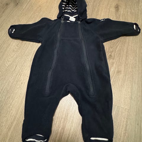 Pent brukt fleecedress str 80, med hette og mulighet for å brette over hendene.