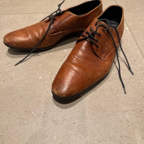 Veldig lite brukt. Kvalitets sko i skinn . Mørkebrune. Kan sende flere varer i samme pakke