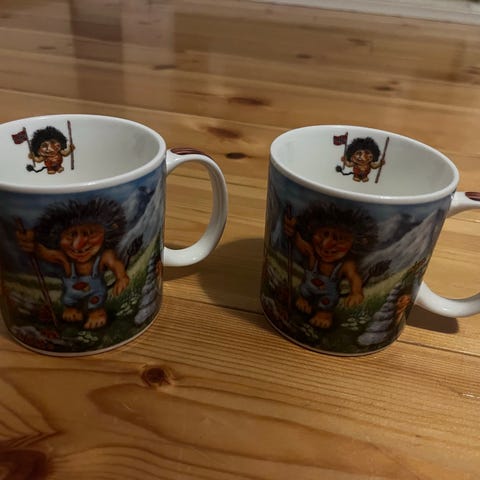 2 stk. like Trollkrus. Høyde 8 cm og diameter 7,5 cm. Pris 50kr pr.stk. Må hentes I Skotselv. Sender ikke