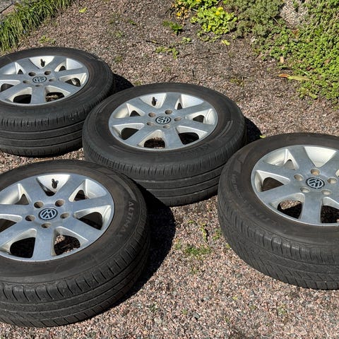 Felgene har stått på en Golf Plus. De har synlige bruksmerker.