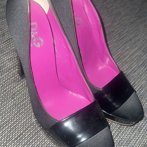 Hæler størrelse 37 i grå lakkskinn. Skoene har en spiss tåform og en smal hæl. Egnet for formelle anledninger eller daglig bruk der hæler ønskes.