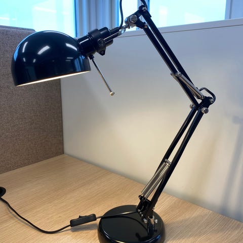 Selger en blå FORSÅ bordlampe fra IKEA. Dette er en utgått modell som ikke lenger selges i butikk.