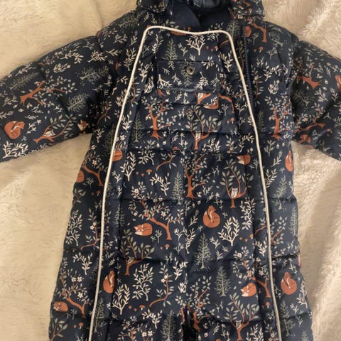 Name it Barne Vinterdress i størrelse 80, flerfarget med dyremotiv. Dressen har hette med pelskant og er designet for unisex barn i alderen 9-12 måneder. Materialet er egnet for vinterbruk, med fôret innside for ekstra varme.