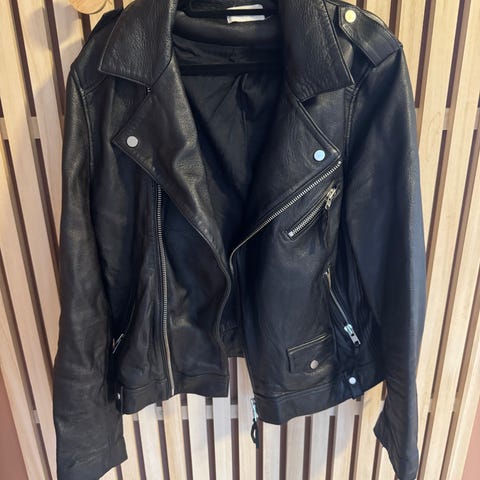 Denne jakken er en ull-blazer som er påsydd deler av en skinnjakke.