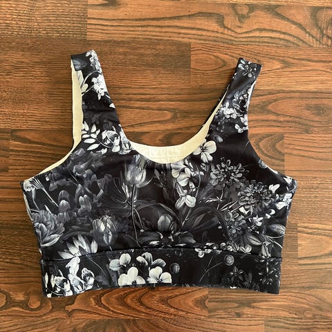 Sportsbra from Lululemon, nice flowery pattern. Crossed straps in the back. Size XXS. Bought in the US.