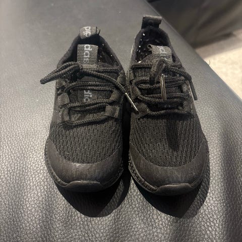 Adidas unisex sneakers i størrelse 32. Skoene har en svart farge og er laget i et pustende tekstilmateriale. Egnet for barn, med snøring for justerbar passform.