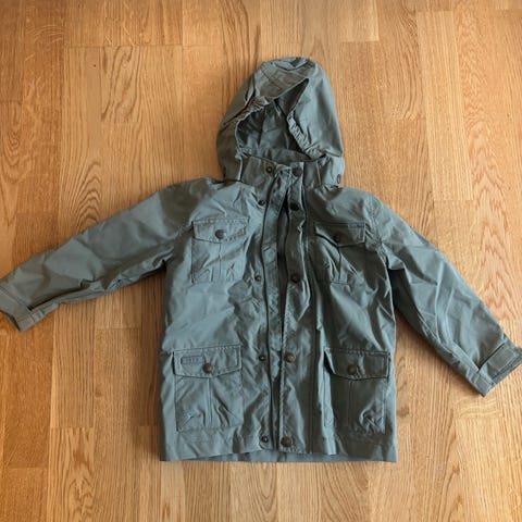 KappAhl barnejakke i størrelse 98, farge grønn, designet for både gutter og jenter. Jakken har hette og flere lommer, egnet for utendørs bruk.