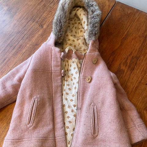 Fantastisk nydelig rød liten kåpe i ull/polyester fra Menuett.
