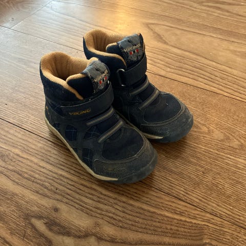 Viking barnevintersko i størrelse 25, designet for unisex bruk. Skoene har borrelås for enkel justering og påkledning, med en kombinasjon av mørk lilla, svart og rosa farger. Yttersålen er slitesterk og egnet for vinterbruk. Skoene er laget for å gi god støtte og komfort til barn i kaldt vær.