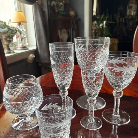 Selger 10 stk. ubrukte rødvinsglass i serien slottsserviset "Villmark". Christineholm Firkløveren. Motiv med ender(2 stk.), rype, gjess(2stk), rådyr, snipe, fasan og tiur(2 stk). Glassene er 22,5 cm høye og 10,5 cm i diameter øverst. Perfekt stand. Fremstår helt ubrukt. Original innpakning følger meg. 200 kr per stk. Kan hentes (Grünerløkka eller Sentrum) eller sendes.