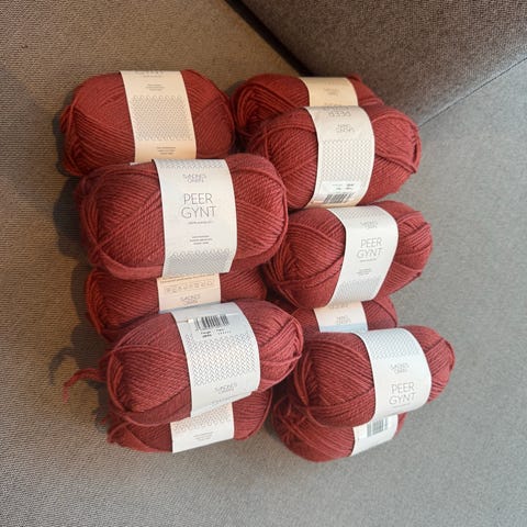 5 nøster peer gynt I fargen 4623 selges. Alle nøstene har lik innfarging
