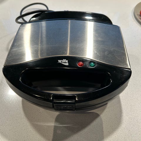 Selger dette toastjernet fra Princess da det ikke er i bruk. Litt riper i grillplaten, men fungerer helt fint. Nypris 500,-. Størrelse 22 x 12 cm.