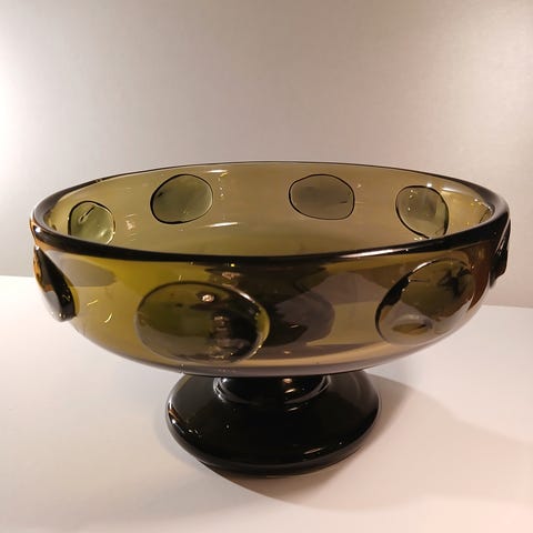 Selger en vintage bolle i kunstglass av Benny Motzfeldt. Vasen er mest sannsynlig produsert ved brukskunstorganisasjonen PLUS i Fredrikstad hvor Benny Motzfeldt var leder for glasshytta fra 1970. Norsk design. Retro. Bollen er ca. 9 cm høy, 18 cm lang og 12,5 cm bred. Litt ujevn underside, men veldig bra stand. Ingen skader. 400 kr. Kan hentes (Grünerløkka eller Sentrum) eller sendes.