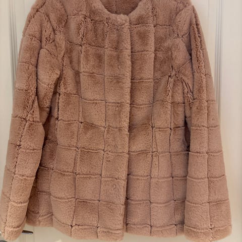 DAY Birger et Mikkelsen jakke i størrelse 36 for kvinner. Jakken er rosa og laget av kunstig pelsmateriale. Den har en myk tekstur og en kortere lengde. Fargen er rød/rosa og veldig kledelig. Lukkes med hemper.