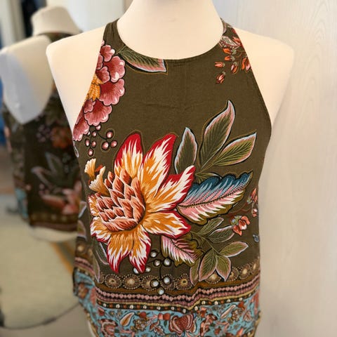 NY Freddies of Pinewood Turquoise Hibiscus Halter Topp (14/L)