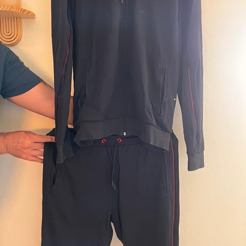 Veldig tøff tracksuit fra Hugos boss. Genseren er stor M og buksen er størrelse L