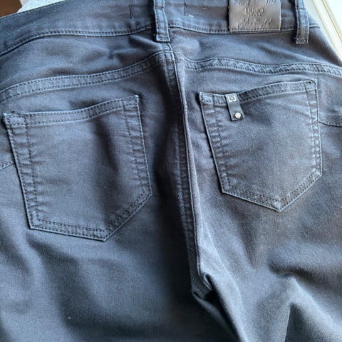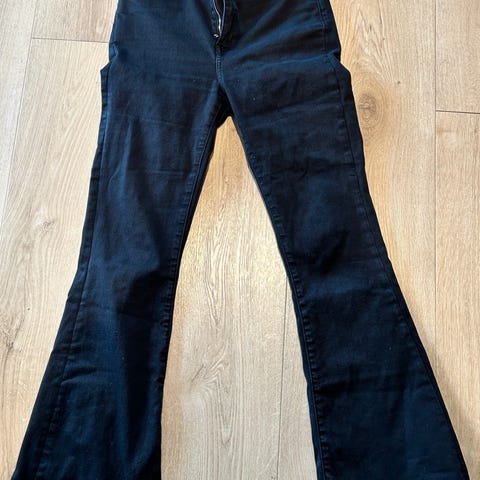 Co'couture bukser i svart farge, størrelse M. Hubby Reverse Ankle Jeans fra Co´Couture er en stilig jeans. Buksen har høyt liv, rette ben med oppbrettet kant nederst og snøring og beltehemper i linningen. Lukkes med knapp og skjult glidelås i front.
