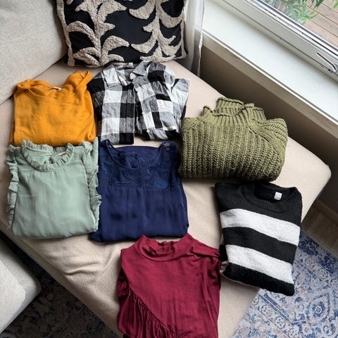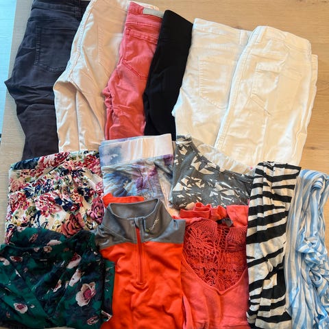 Stor klespakke str. L (eller tilsvarende) med 12 fine plagg selges samlet.