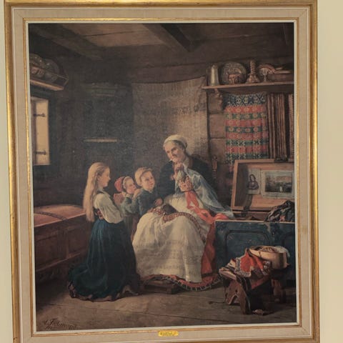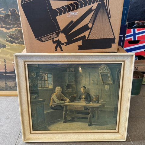 Selger et flott og stort bilde av “Brudekronen” (Adolph Tidemand). Dette er en reproduksjon/print, ikke original, men et dekorativt og klassisk motiv med norsk kulturhistorie – perfekt til hytte, stue eller nostalgisk interiør.