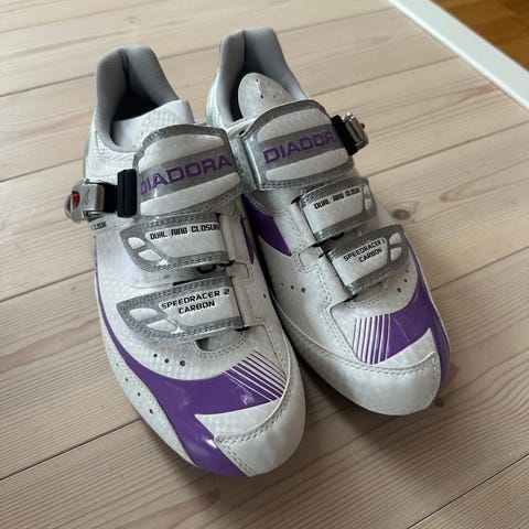 Pent brukte sykkelsko til dame selges. Kan brukes både utendørs og på spinning. Størrelse 41.