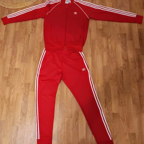 Adidas track suit i svart farge, størrelse S. Tracksuiten er designet for utendørs bruk og har en hel glidelås foran. Materialet er tilpasset for komfort og bevegelsesfrihet.