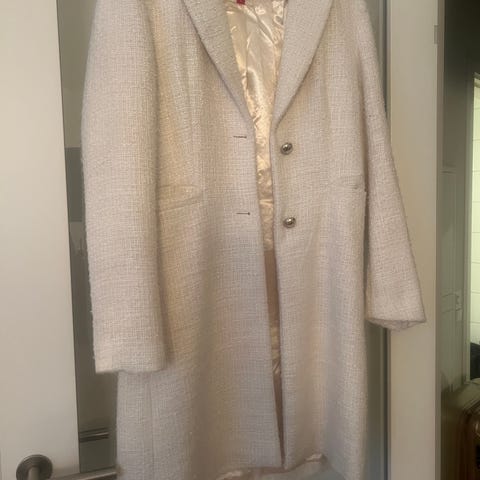 GUESS kåpe i hvit farge, størrelse S. Kåpen har en myk og teksturert overflate, egnet for kvinner.
